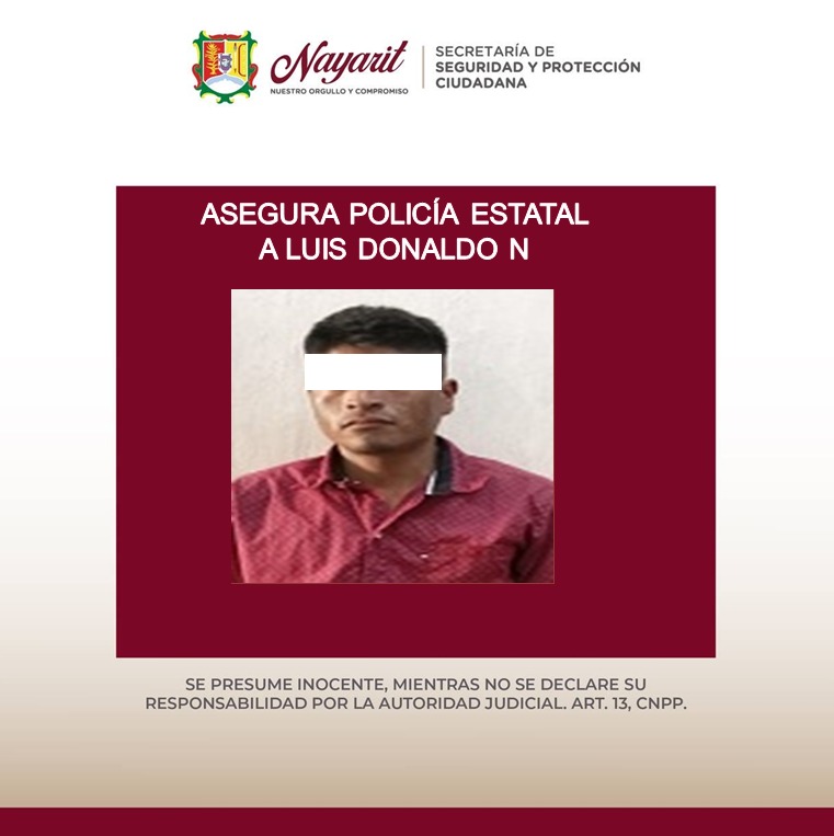 1.- Luis Donaldo “N” “N”, de 27 años, en el municipio de Del Nayar, dando cumplimiento a la orden de aprehensión por presunta participación en el hecho delictuoso de lesiones calificadas.