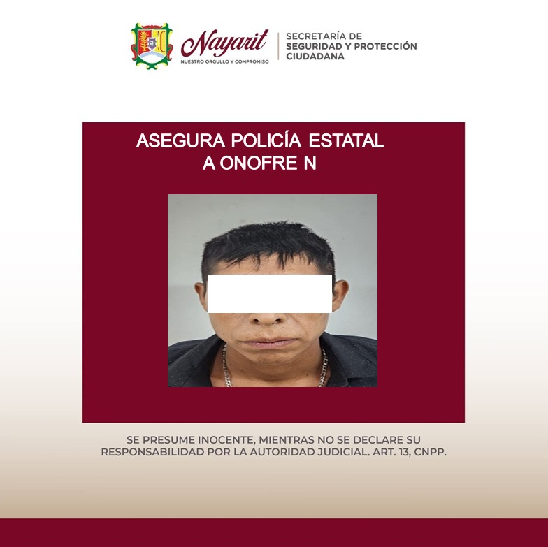 1.- Onofre “N” “N”, de 22 años, en el municipio de Ruiz, por su presunta participación en el hecho delictuoso de portación de arma de fuego sin registro, asegurándole un arma de fuego calibre .25, con un cargador abastecido y con 3 cartuchos útiles al calibre.