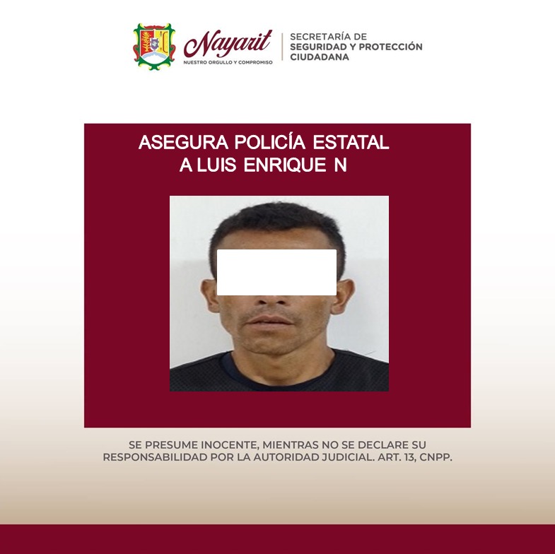 1.- Luis Enrique “N” “N”, de 38 años, en el municipio de San Blas, dando cumplimiento a la orden de aprehensión por su presunta participación en el hecho delictuoso de violencia familiar en agravio de una persona de sexo femenino.