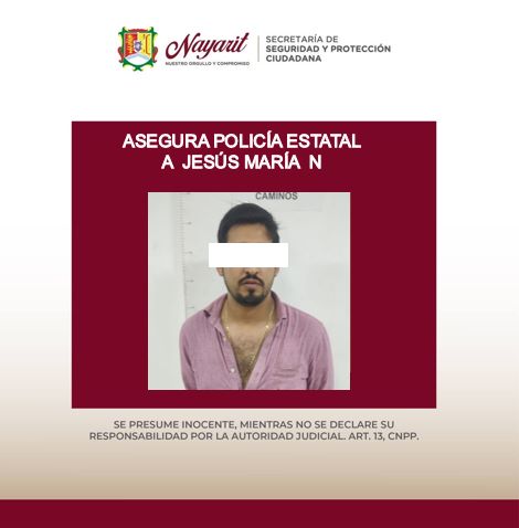 La Secretaría de Seguridad y Protección Ciudadana aseguran a una (1) persona, esto durante recorridos de vigilancia y prevención al delito implementados por elementos de la Policía Estatal en la ciudad de Tepic.
