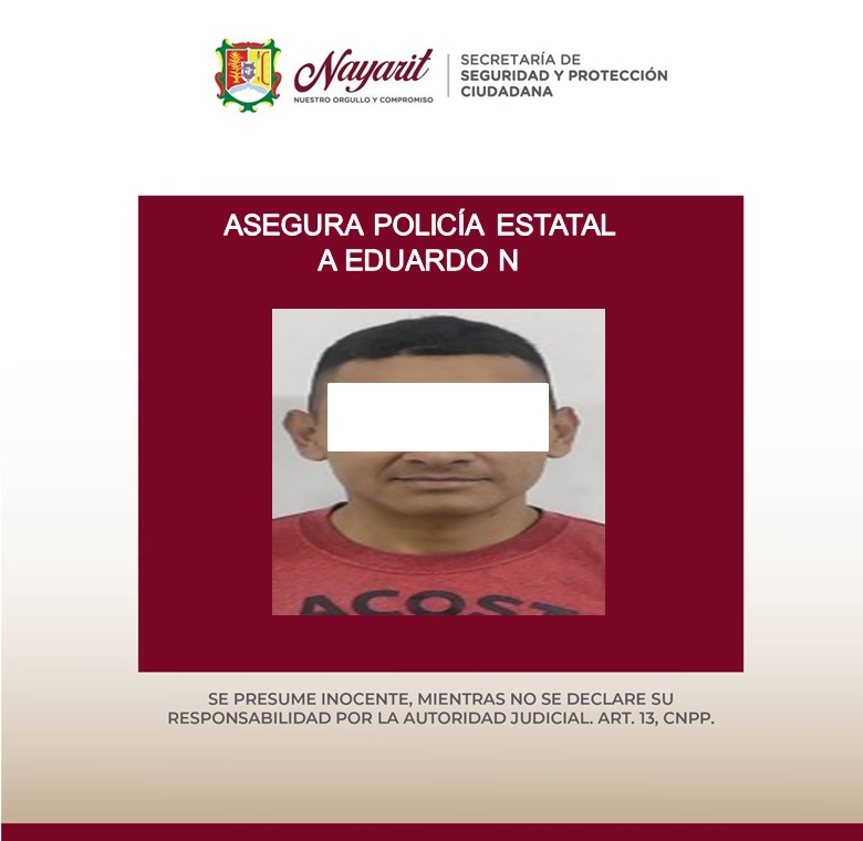 La Secretaría de Seguridad y Protección Ciudadana logró el aseguramiento de una (1) persona, esto durante recorridos de vigilancia y prevención al delito implementados por elementos de la Policía Estatal en el municipio de Tepic.