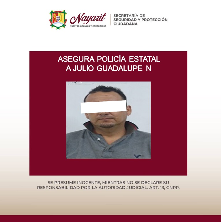 1.- Julio Guadalupe “N” “N”, de 34 años, en el municipio de Tuxpan, dando cumplimiento a la orden de aprehensión, por su presunta participación en el hecho delictuoso de abandono de familiares.
