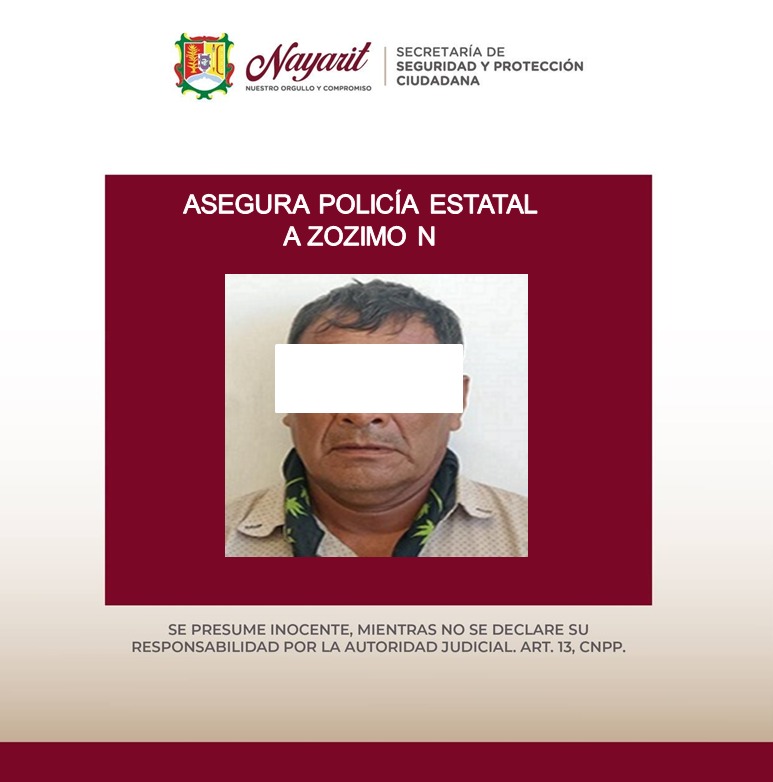 1.- Zozimo “N” “N”, de 56 años, en el municipio Del Nayar, dando cumplimiento a la orden de aprehensión por su presunta participación en el hecho delictuoso de violación equiparada agravada, en agravio de una menor de identidad reservada.
