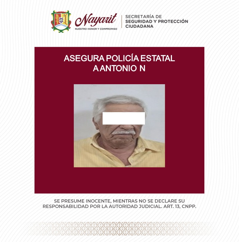 1.- Antonio “N” “N”, de 78 años, en la localidad de la Fortuna, municipio de Tepic, por presunta participación en el hecho delictuoso de lesiones y daño a las cosas.