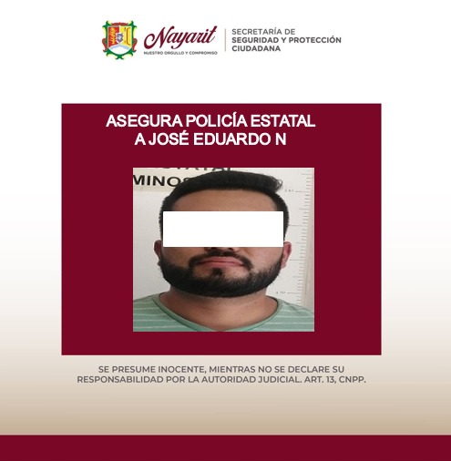 La Secretaría de Seguridad y Protección Ciudadana aseguro a una (1) persona, esto durante recorridos de vigilancia y prevención al delito implementados por elementos de la Policía Estatal en la ciudad de Tepic.