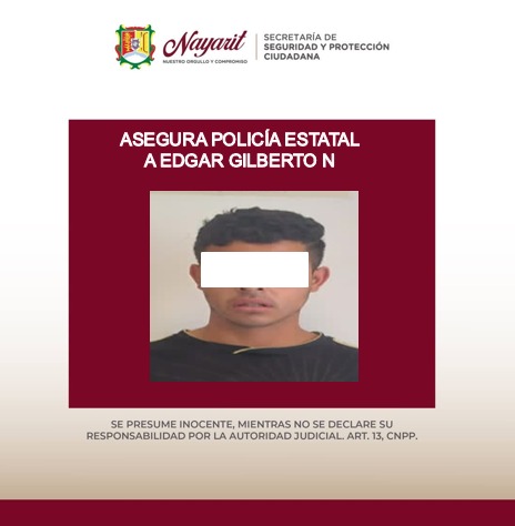 La Secretaría de Seguridad y Protección Ciudadana logró el aseguramiento de uno (1) persona, esto durante recorridos de vigilancia y prevención al delito implementados por elementos de la Policía Estatal en la ciudad de Tepic.