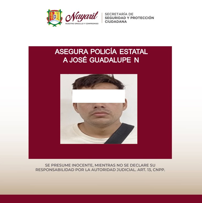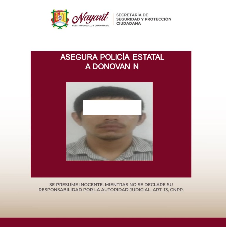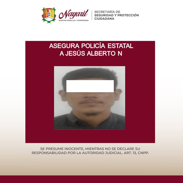 1.- José Guadalupe “N” “N”, de 25 años, en el municipio de Xalisco, asegurándole una bolsa de plástico conteniendo en su interior un vegetal verde y seco con las características propias de la marihuana.