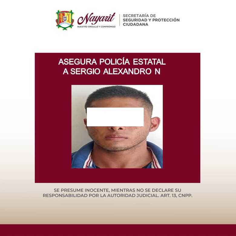 2.- Sergio Alexandro “N” “N”, de 25 años, en el fraccionamiento Castilla de Tepic, asegurándole una bolsa de plástico conteniendo en su interior una sustancia cristalina y granulada con las características propias de la droga conocida como cristal.