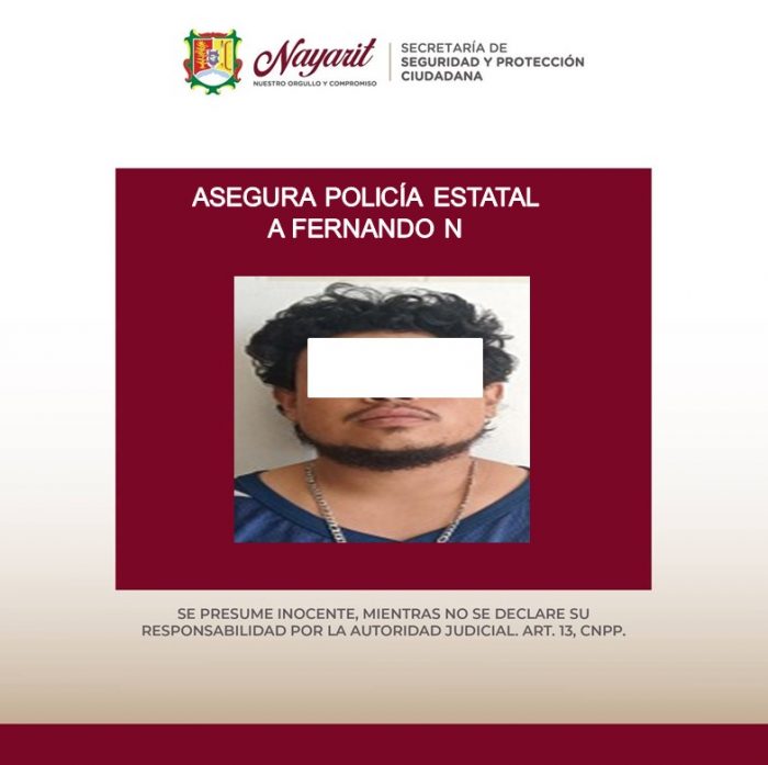 1.- Fernando “N” “N”, de 25 años, en el fraccionamiento Vistas de la Cantera de Tepic, asegurándole una bolsa de plástico conteniendo en el interior un vegetal verde y seco con las características propias de la marihuana.
