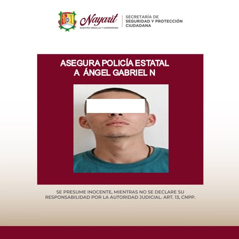 1.- Ángel Gabriel “N” “N”, de 19 años, en el fraccionamiento Villas de La Cantera de Tepic, asegurándole una bolsa de plástico conteniendo en su interior un vegetal verde y seco con las características de la marihuana.