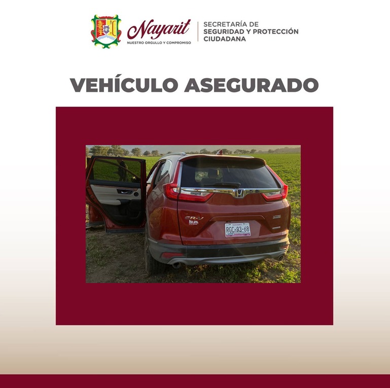 Finalmente, un vehículo marca Honda, sub-marca CRV, color vino, en estado de abandono, asegurado durante el recorrido de vigilancia en el municipio de Jala.