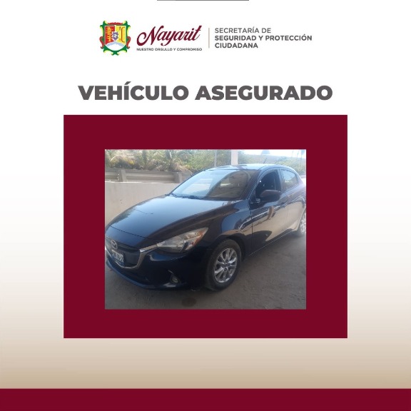 Finalmente, de un vehículo marca Mazda, sub-marca 2, color azul marino, modelo 2017, que cuenta con alteración en sus números de identificación vehicular, asegurado durante los recorridos de vigilancia en la localidad de Jarretaderas, municipio de Bahía de Banderas.