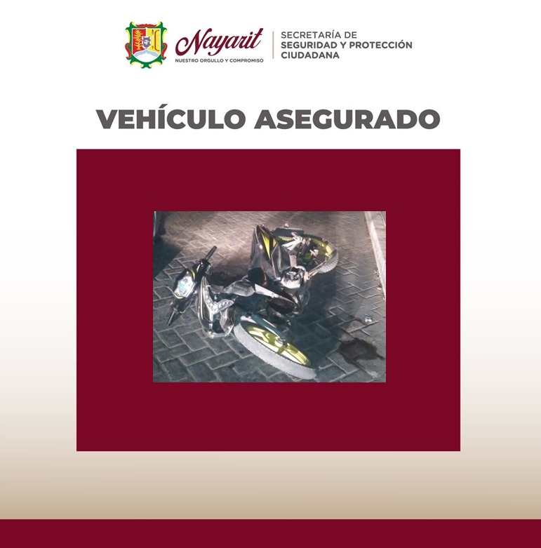 2.-Finalmente se aseguró una motocicleta de la marca Italika, sub-marca AT-125, modelo 2020, en color negro con amarillo, misma que se encontró en estado de abandono, esto en recorridos de vigilancia y prevención al delito en el municipio de Santiago Ixcuintla.