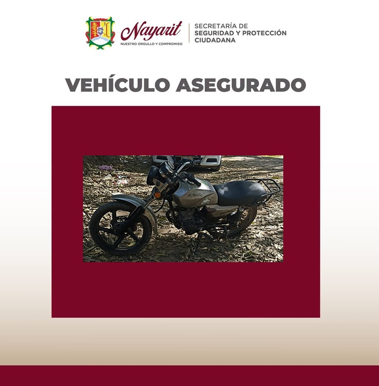 Se trata de una motocicleta de la marca Italika FT-125, en color gris, misma que se encuentra en estado de abandono, asegurada durante recorrido de vigilancia y prevención al delito en el municipio de Bahía de Banderas.