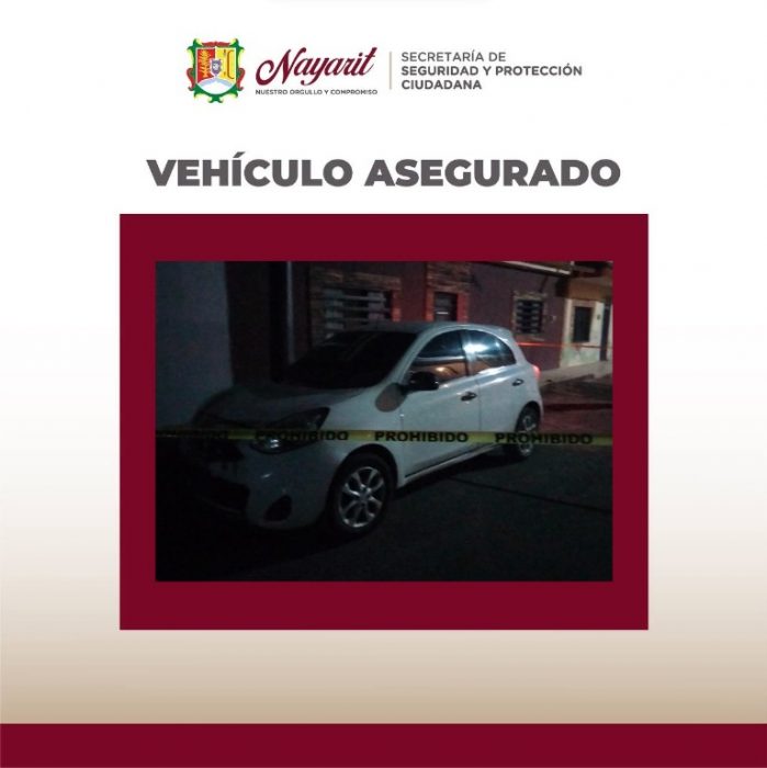 Se trata de un vehículo marca Nissan, sub-marca March, color blanco, modelo 2016, con reporte de robo en el estado de Jalisco, asegurado durante el recorrido de vigilancia en el municipio de Ixtlán del Rio.