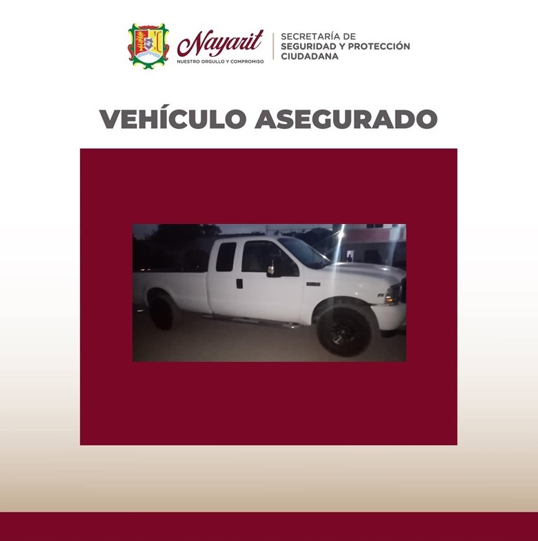 Se trata de un vehículo de la marca Ford, sub-marca F-250, modelo 2002, color blanco, con reporte de robo vigente, asegurado en las instalaciones de REPUVE, durante la verificación correspondiente.