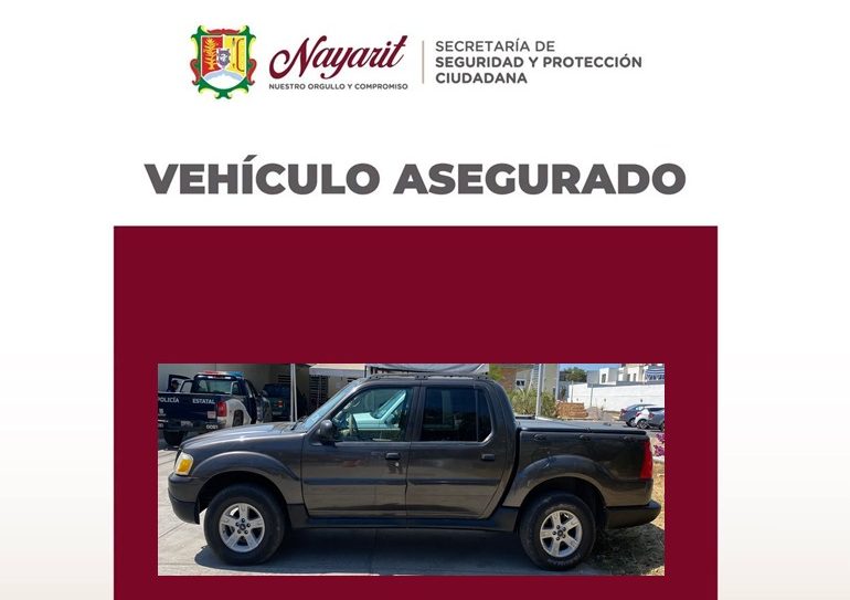 Elementos de la Policía Estatal de la Secretaría de Seguridad y Protección Ciudadana asegura un (1) vehículo, en el municipio de Tepic.