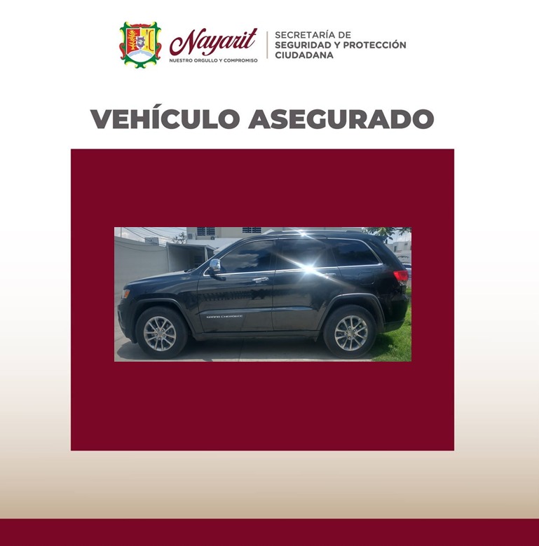 1.- Se trata de un vehículo marca Jeep, sub-marca Grand Cherokee, modelo 2014, color negro, mismo que cuenta con alteración en los documentos, esto en las instalaciones de REPUVE en el municipio de Tepic.