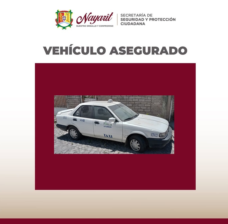 Elementos de la Policía Estatal de la Secretaría de Seguridad y Protección Ciudadana brindan apoyo a la Agencia de Investigación de Integridad Corporal, para asegurar un (1) vehículo en el municipio de Xalisco.