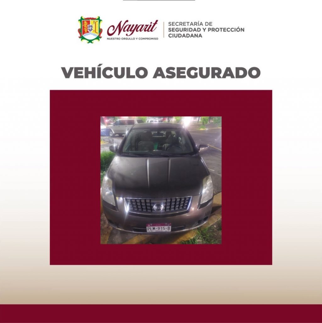 Se trata de un vehículo marca Nissan, sub-marca Sentra, color gris, el cual se encontraba en estado de abandono, asegurado durante los recorridos de vigilancia en la ciudad de Tepic.