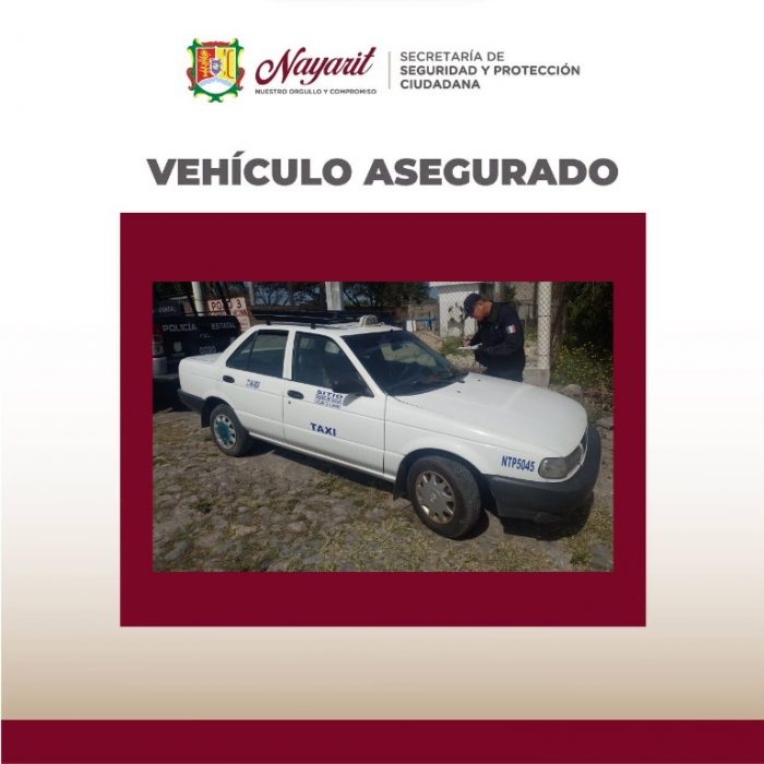Se trata de un vehículo marca Nissan, sub-marca Tsuru, color blanco, modelo 2009, asegurado en la colonia Sutsem Landareñas del municipio de Tepic.