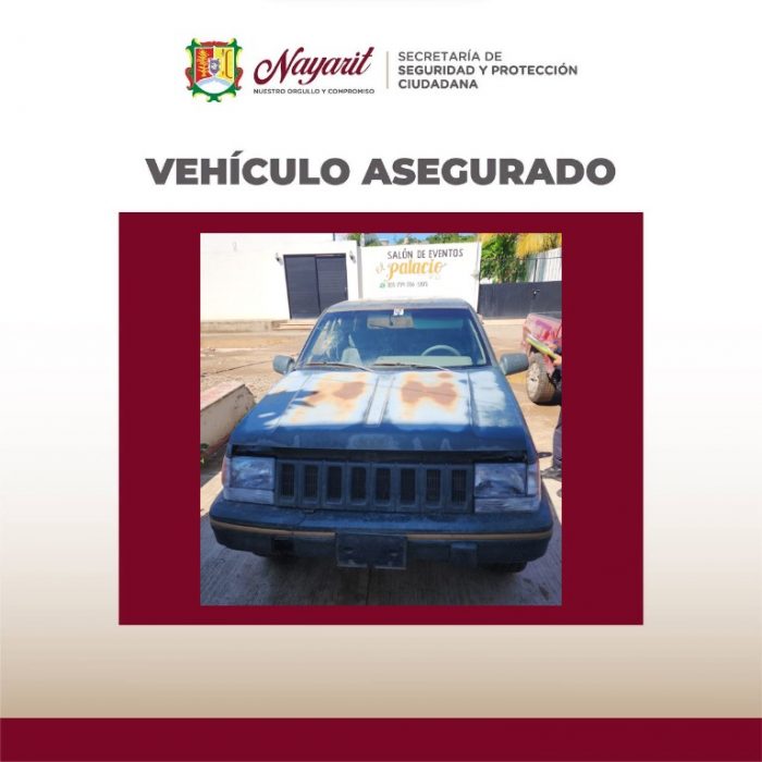 Elementos de la Policía Estatal de la Secretaría de Seguridad y Protección Ciudadana aseguran un (1) vehículo con reporte de robo en el estado de Chihuahua, en las instalaciones de REPUVE en la localidad de Las Varas del municipio de Compostela.
