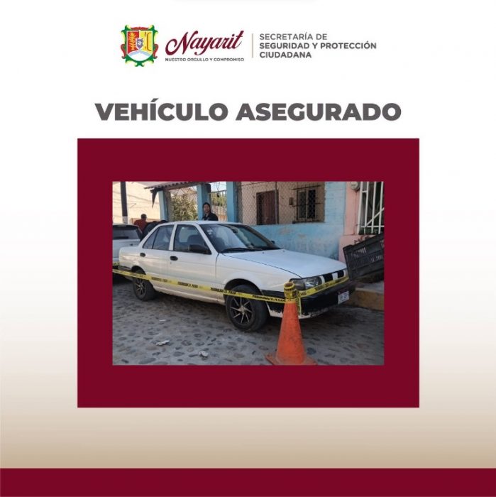 Elementos de la Policía Estatal de la Secretaría de Seguridad y Protección Ciudadana aseguran un (1) vehículo, en las instalaciones de REPUVE en la localidad de San Juan de Abajo, municipio de Bahía de Banderas.