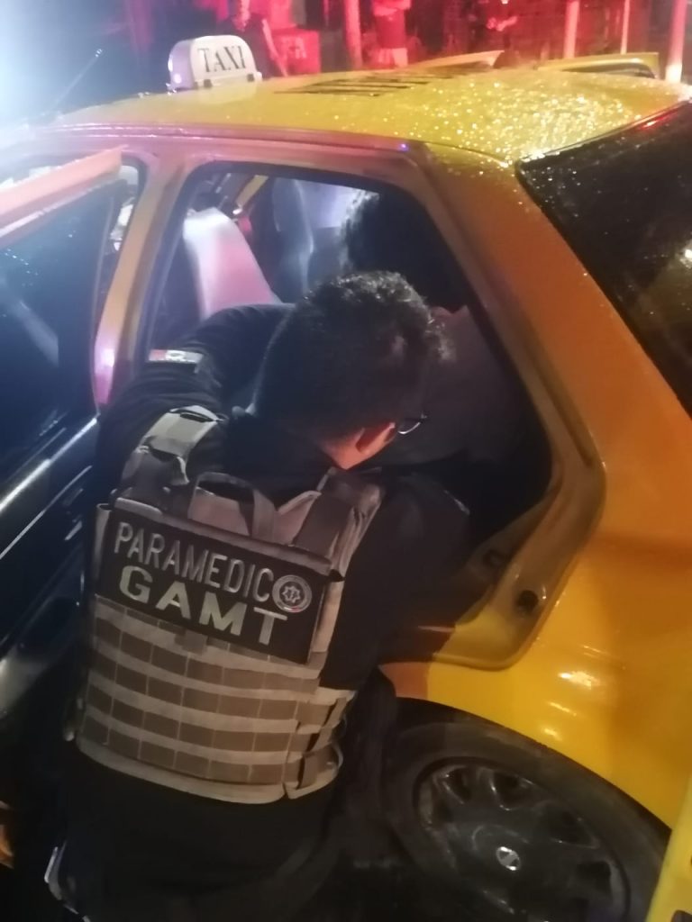 La Secretaría de Seguridad y Protección Ciudadana a través de la Unidad Médica Táctica de la Policía Estatal brinda atención médica temprana a tres (3) personas que resultaron lesionadas por accidente automovilístico en la ciudad de Tepic.