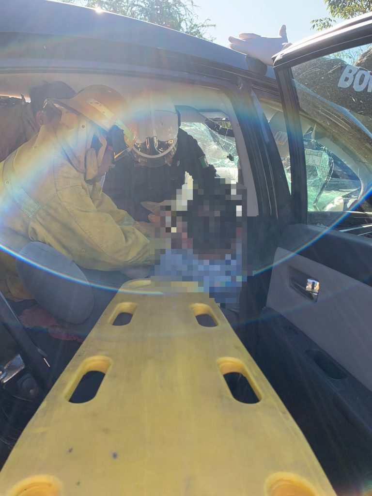 Se realizaron más maniobras mediante el uso de la herramienta hidráulica “quijadas de la vida”, logrando extraer al masculino, siendo colocado en una camilla de traslado rígida para posteriormente ser llevado a atención médica.