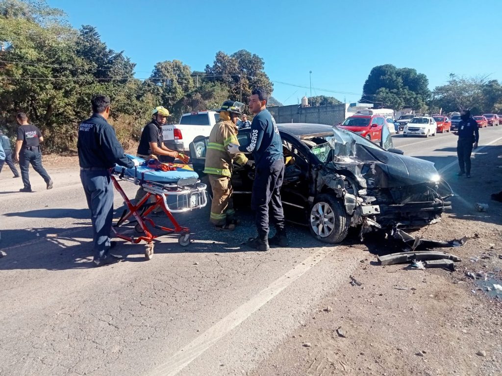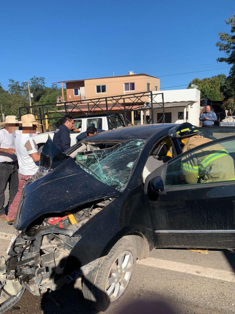 Al arribo de los Bomberos de Nayarit se observó un hecho de tránsito entre un vehículo tipo sedán y un remolque de tractocamión, al interior del automóvil se encontró a un masculino atorado.
