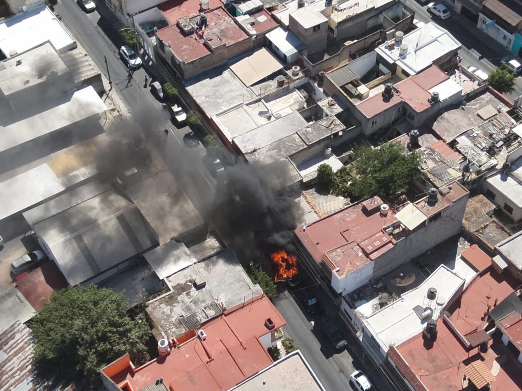 La Secretaría de Seguridad y Protección Ciudadana, a través de la Dirección General de Bomberos y la Unidad Cóndor (Drones), atendió un reporte de incendio en un vehículo siniestrado sobre la calle Querétaro, entre las calles Abasolo y Mina, en la zona centro de la ciudad.