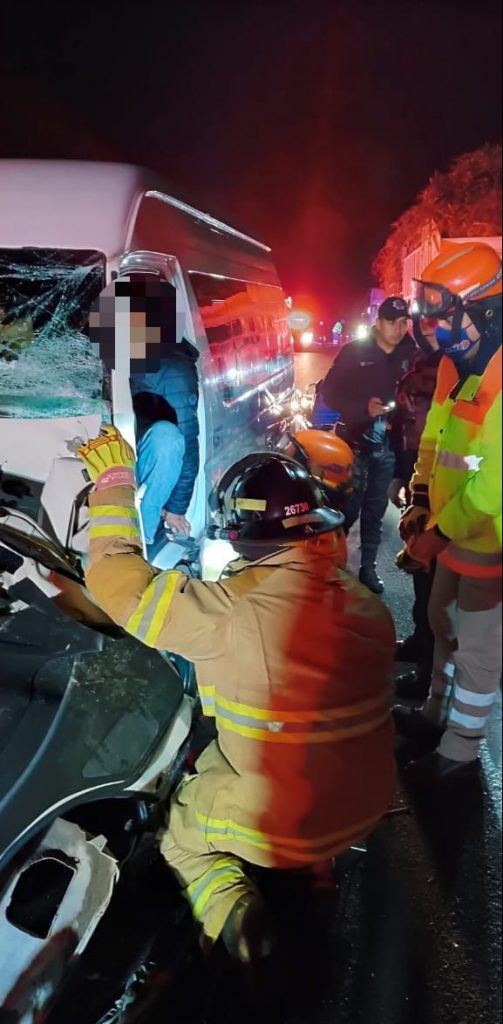 Al interior de la combi se encontraba atorado el conductor, por lo que rápidamente se procedió a desconectar la batería de la combi para prevenir un incendio, posterior a ello mediante el uso de la herramienta hidráulica conocida como “quijadas de la vida” los bomberos procedieron a cortar la puerta de la combi y expandir la cabina logrando desatorar al masculino.