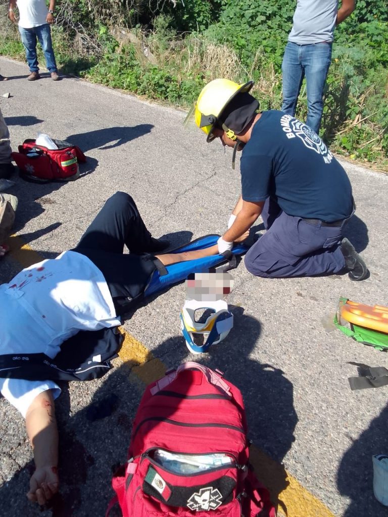 Bomberos de Nayarit en conjunto con autoridades municipales brindan pronta respuesta prehospitalaria ante un hecho de tránsito en la carretera Milpas Viejas – Acaponeta.