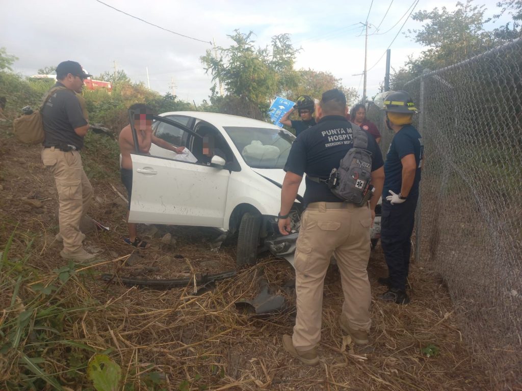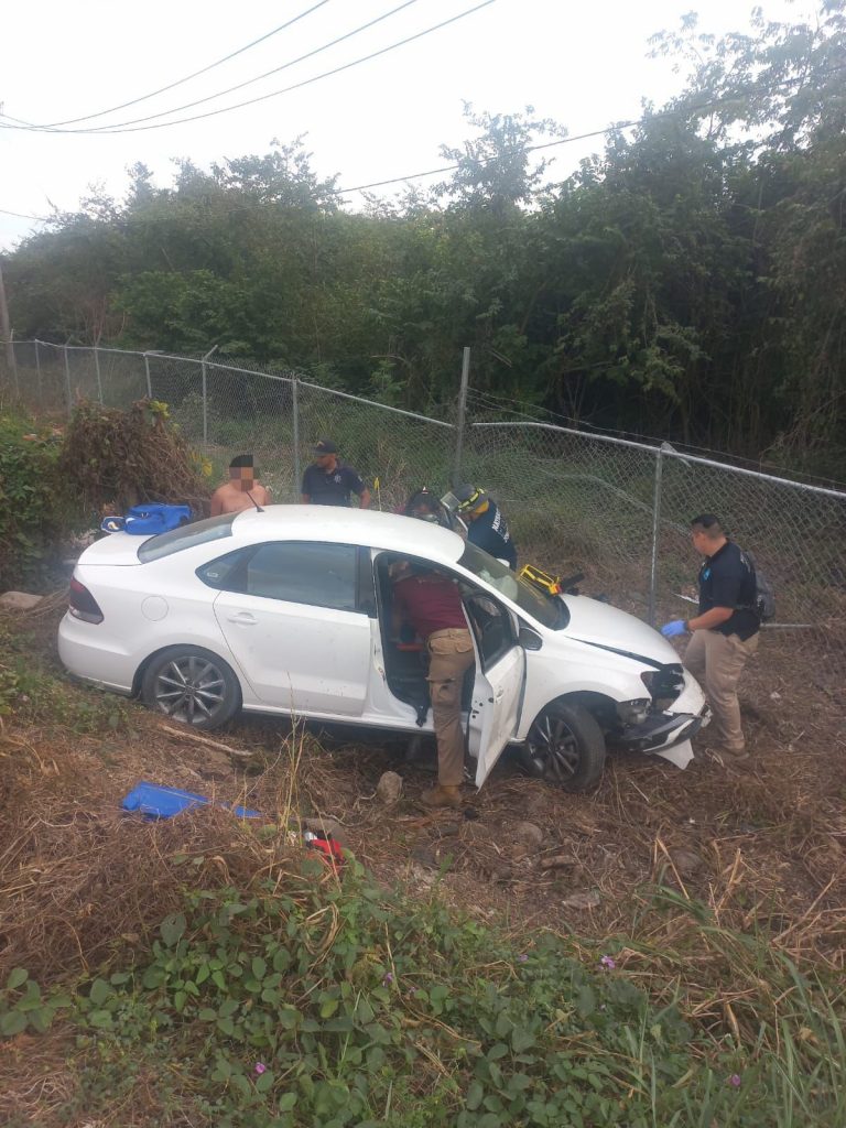 Cuando los bomberos estatales arribaron al lugar, se encontró un vehículo tipo sedán en color blanco, fuera de la cinta asfáltica, mismo que transportara a una femenina y un masculino en aparente estado de ebriedad.