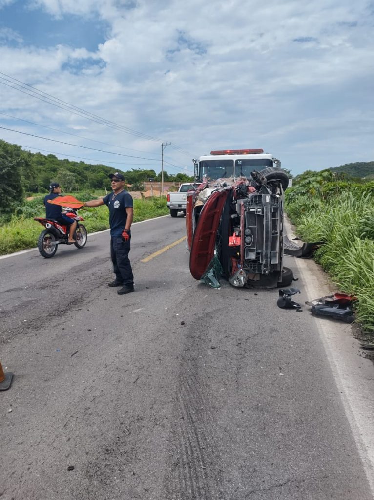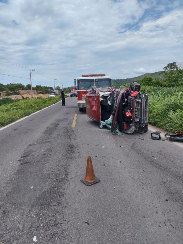 Ante el suceso, los Bomberos Estatales se dirigieron rápidamente a la zona donde se encontraron dos (2) vehículos siendo el primero un auto de la marca Hyunadai, en color rojo, volcado sobre la cinta asfáltica y el segundo una camioneta de carga, en color blanco, mismos a los que se les desconectaron las baterías para prevenir un incendio.