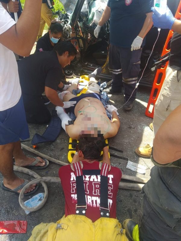 Logrando poner a salvo a una persona del sexo masculino de 38 años de edad, misma que a la revisión por parte del personal paramédico se encontraba politraumatizado en la extremidad superior, pelvis y tórax, por lo cual fue atendido y empaquetado en el lugar, para posteriormente ser trasladado rápidamente a un nosocomio.