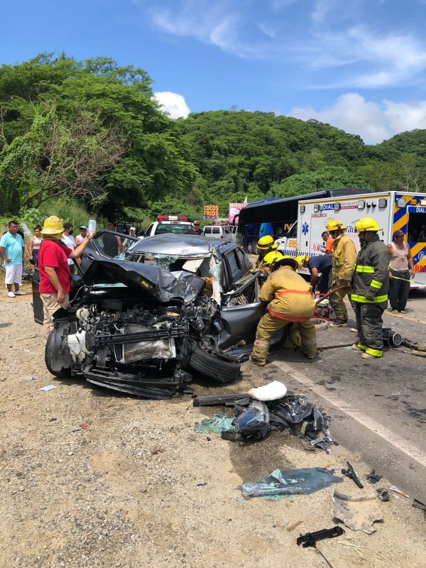 En atención a un reporte recibido por la línea de emergencias 9-1-1, donde se mencionara un accidente vehicular entre un autobús y un vehículo, esto con posibles personas prensadas en la carretera Federal 200, sobre el kilómetro 132, en Bahía de Banderas.
