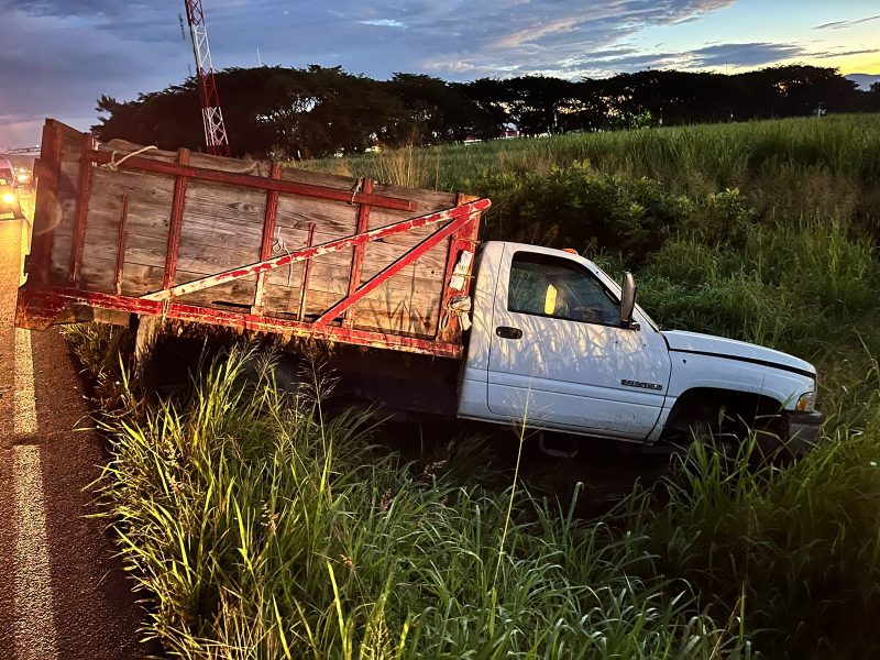 Asimismo, fuera de la cinta asfáltica se encontraba una camioneta de la marca Ram, sub marca 4000, en color blanco, sin personas lesionadas. El personal de Bomberos, procedió a aplicar aserrín en la cinta asfáltica ya que se encontraba derrame de combustible en la carretera.