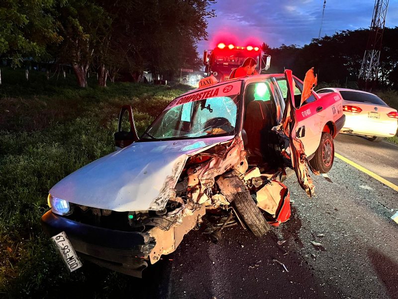 Personal de Protección Ciudadana y Bomberos, se informa del hecho y se dirige al lugar señalado donde se encontró un vehículo tipo sedan, en color blanco, del servicio público taxi, con placas de Compostela, en el cual, viajaba una persona del sexo femenino, de 37 años, misma que fuera trasladada por una ambulancia de Protección Civil municipal de Xalisco.