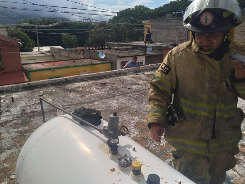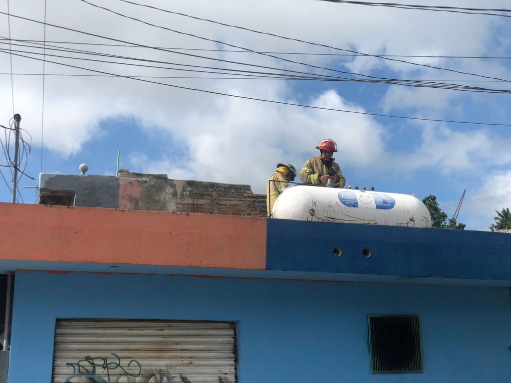 En atención a un reporte recibido a la línea de emergencias 9-1-1, donde se mencionara una fuga de gas con flama en la colonia Prieto Crispín de Tepic.