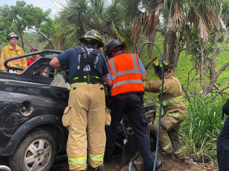 En atención a un reporte recibido a la línea de emergencias 9-1-1, donde se mencionara un accidente vehicular con personas prensadas al interior del vehículo, en la carretera Federal 15 a la altura de la localidad de Pantano Grande del municipio de Santiago Ixcuintla.