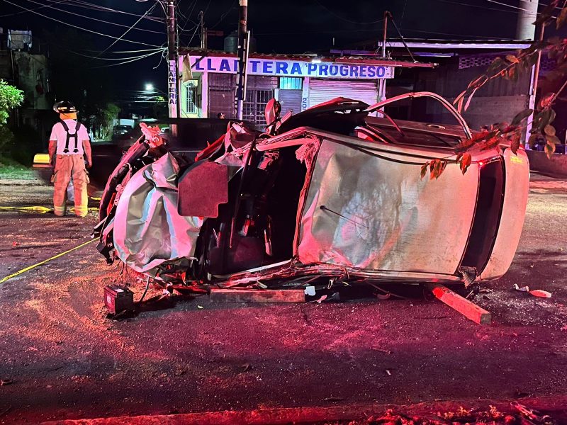 En atención a un reporte recibido a la línea de emergencias 9-1-1, donde se mencionara un vehículo volcado con posibles personas prensadas sobre la avenida Insurgentes, a la altura del hotel “Las Palomas”, en la colonia Llanitos.
