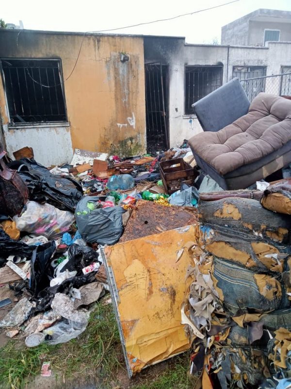 Posterior a dos horas de labores de sofocación con el uso de un camión cisterna y tres pipas se logró apagar el incendio de toda la casa. Cabe mencionar que la casa se encuentra deshabitada y saturada totalmente de basura.