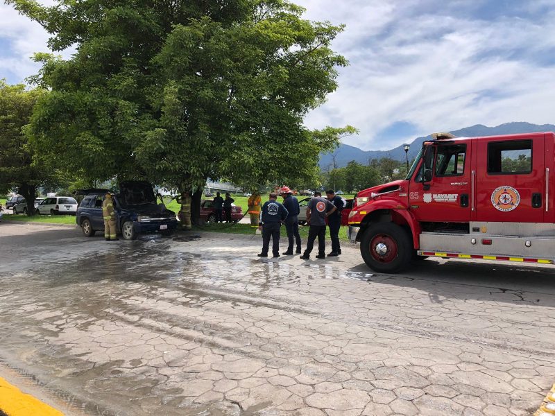 En atención a un reporte recibido a la línea de emergencias 9-1-1, donde se mencionara un incendio de vehículo en el fraccionamiento Castilla de Tepic.