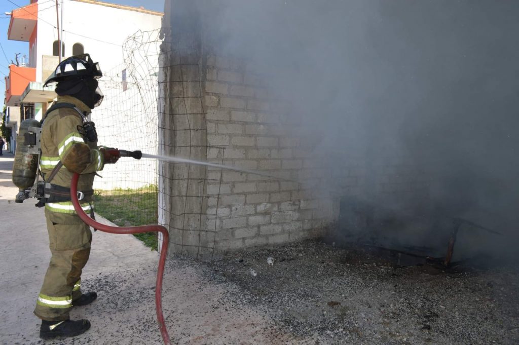 En atención a un reporte recibido a la línea de emergencias 9-1-1, donde se mencionara un incendio de casa habitación en el fraccionamiento Jacarandas de Tepic.