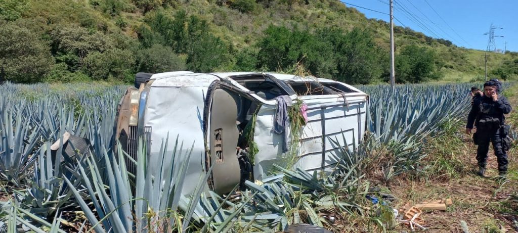 Personal de Protección Ciudadana y Bomberos, toma conocimiento del hecho y se dirige al lugar señalado donde se encontró una camioneta de la marca Chevrolet, tipo van, en color blanca, con placas del Estado de Jalisco, volcada fuera de la cinta asfáltica.