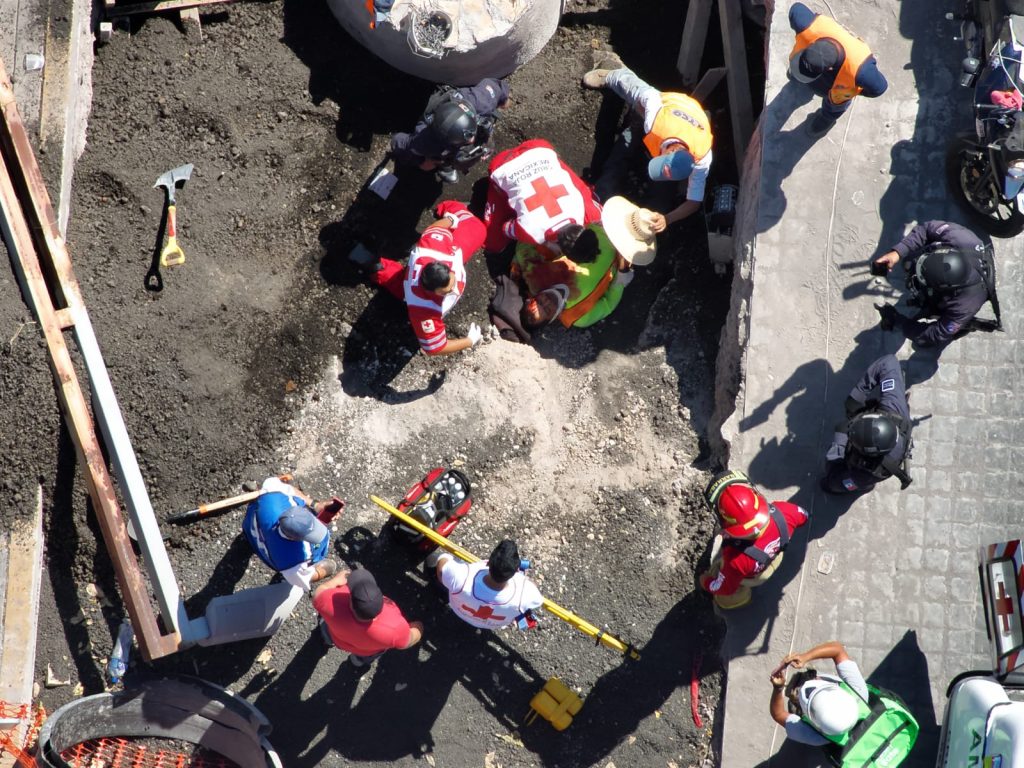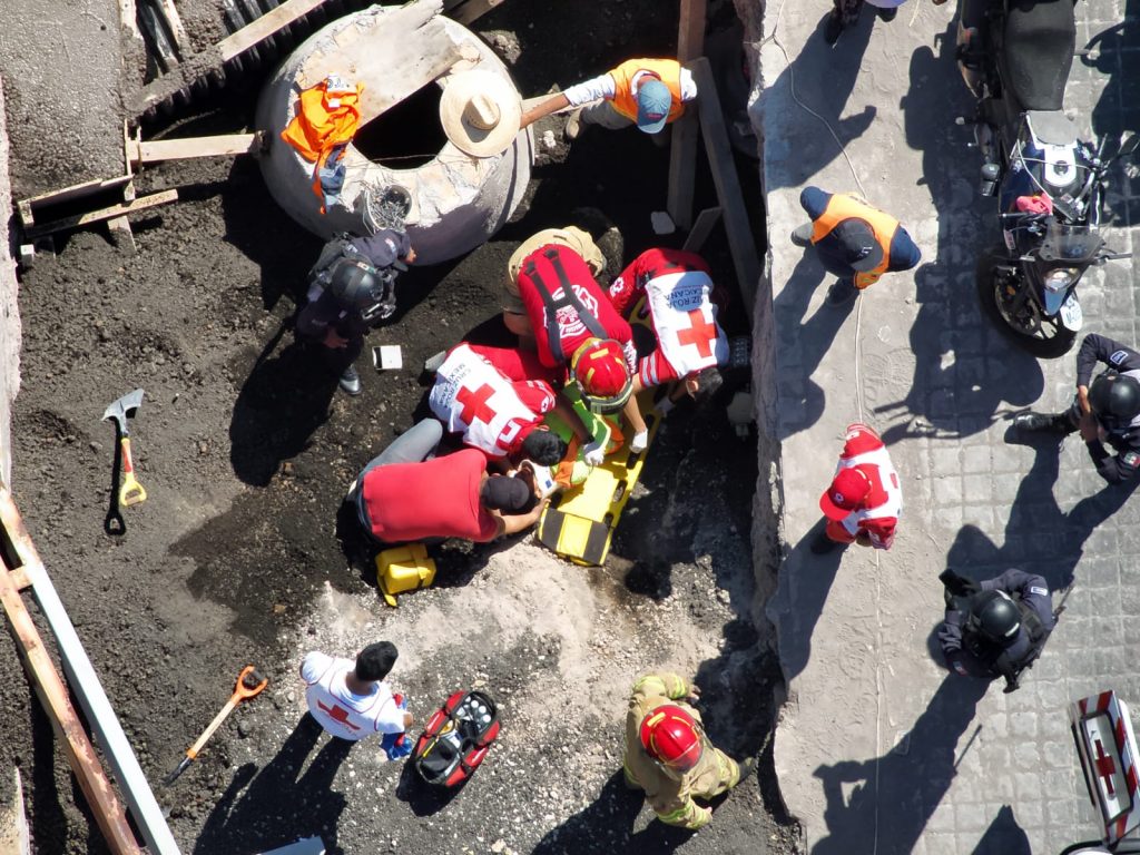 El cuerpo de bomberos decendio hacia donde se encontraba una persona del sexo masculino, de 43 años de edad, mismo que presentara lesiones en la cabeza, siendo empaquetado en una cama rígida de traslado para lograr de esta forma ser extraído y trasladado a urgencias médicas por personal de la Cruz Roja.