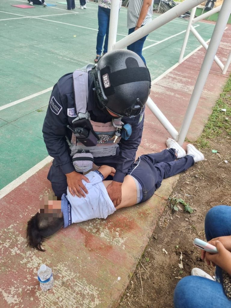 En la segunda atención, los paramédicos de la Policía Estatal auxiliaron a un menor de edad, de doce (12) años que se lesionara por caer desde su propia altura en la secundaria Técnica 63, ubicada en la colonia Sutsem Landareñas, en el municipio de Xalisco.