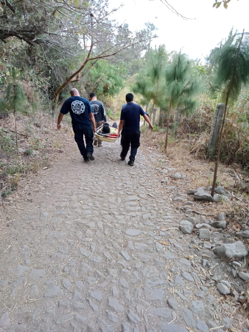 La femenina fue colocada en una camilla rígida de traslado, donde fue cargada por los elementos bomberiles hacia la parte baja del cerro, lugar donde se encontraba el vehículo de la femenina.
