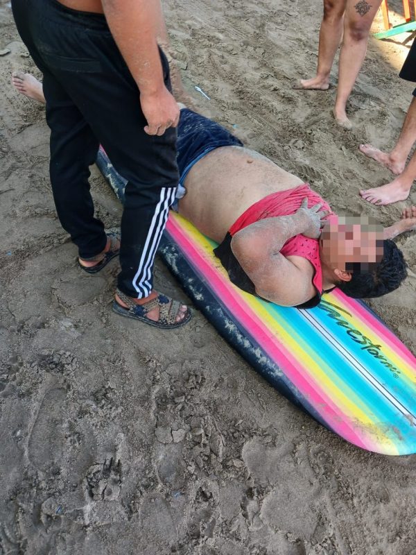 Cuando los guardavidas arribaron a la zona se encontraron con un masculino de treinta (30) años en estado de inconsciencia, mismo que se encontrara bajo los efectos del alcohol. Rápidamente se procedió a realizar la técnica (ABC) logrando percibir la presencia de signos vitales, por lo cual se colocó en una pose de recuperación logrando devolverlo a un estado de consciencia.